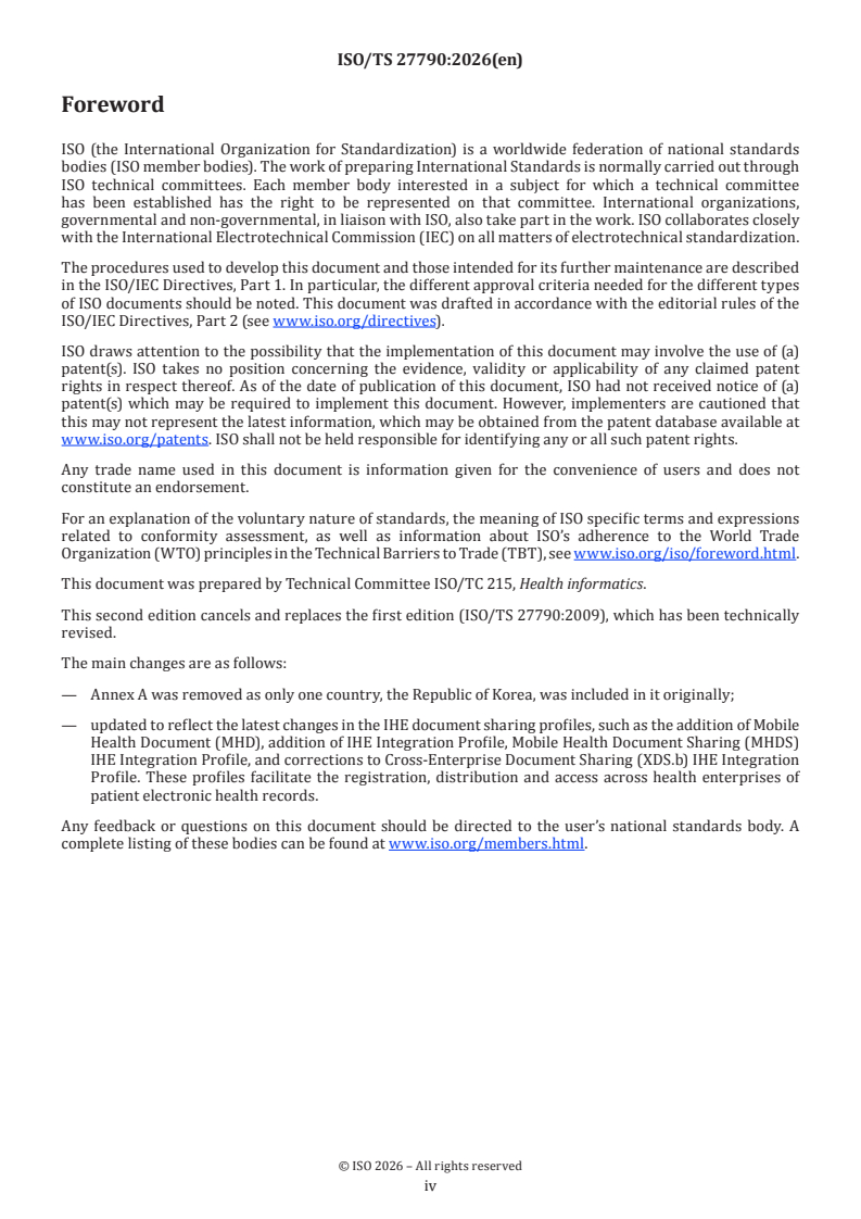 ISO/TS 27790:2026 has the following relationships with other standards: It is inter standard links to ISO/TS 27790:2009. Understanding these relationships helps ensure you are using the most current and applicable version of the standard.