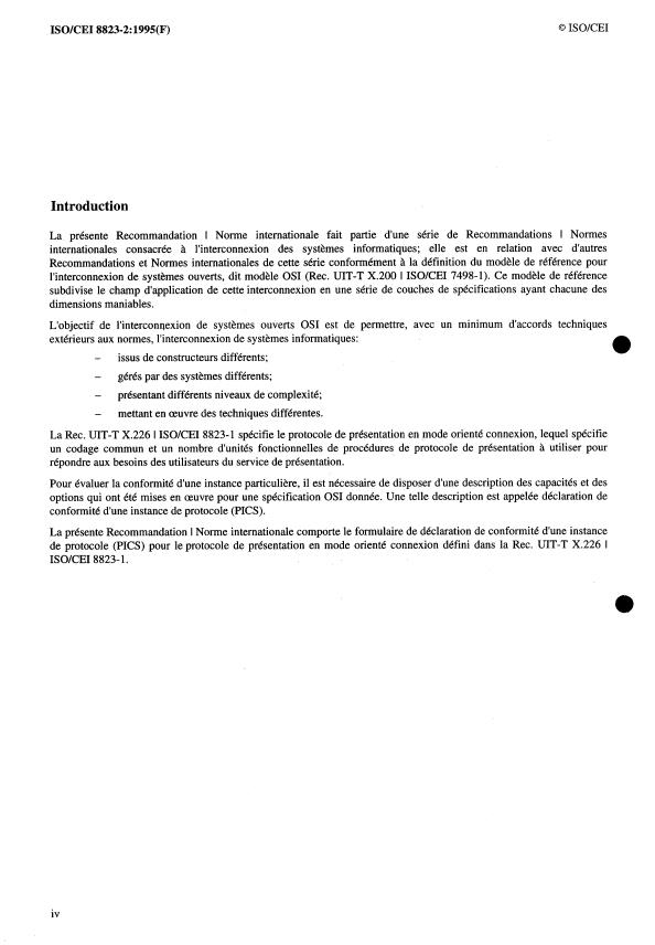 doit en conserver la numérotation et l'ordre des items du formulaire PICS de I'UIT-T I ISO/CEI.