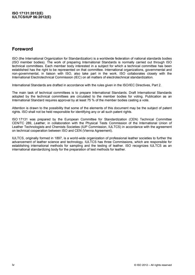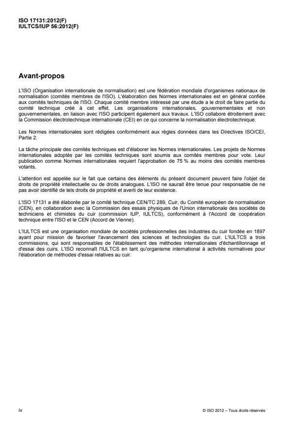 L'ISO 17131 a été élaborée par le comité technique CEN/TC 289, Cuir, du Comité européen de normalisation