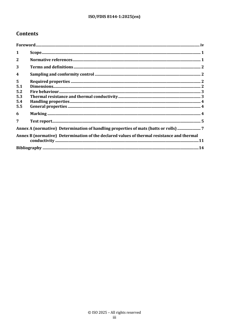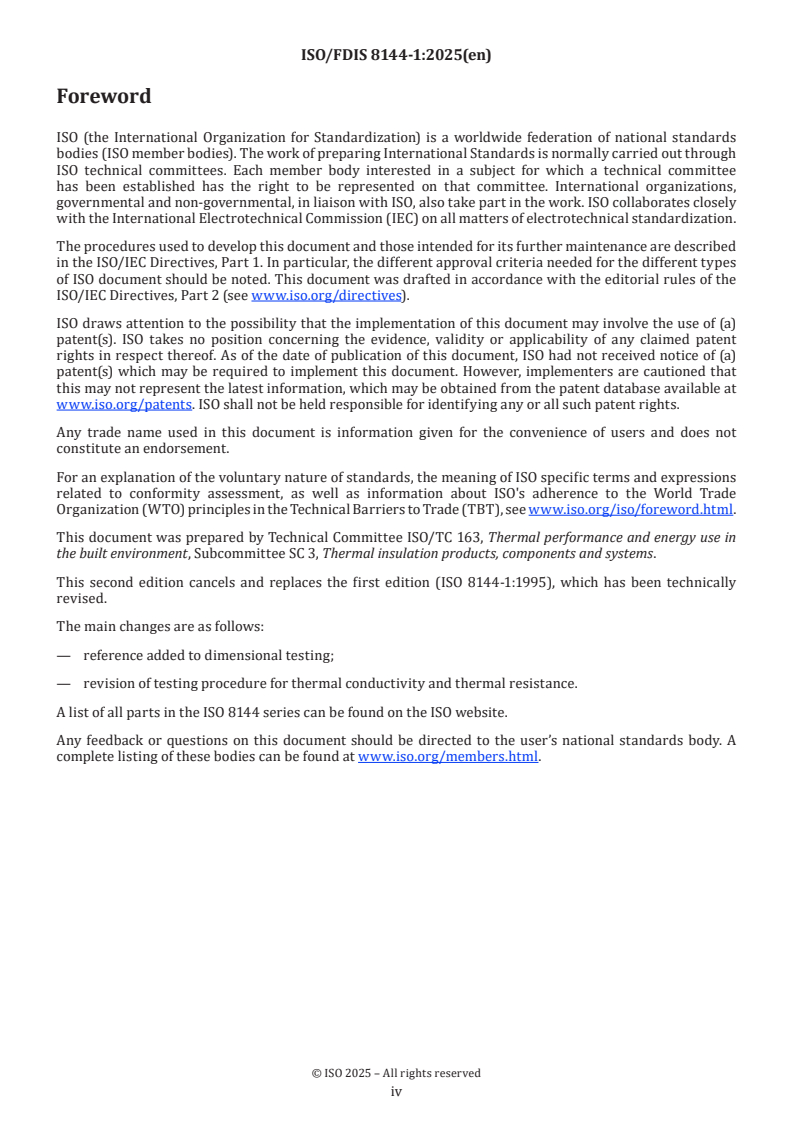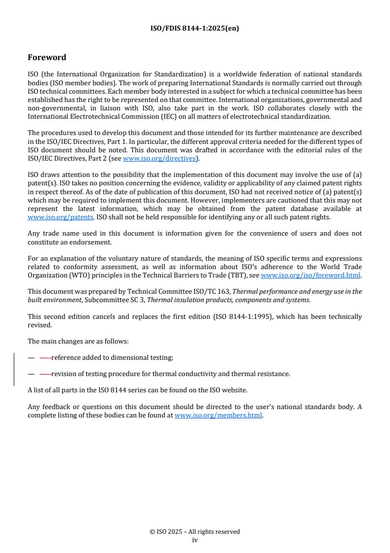 REDLINE ISO/FDIS 8144-1 - Thermal insulation — Mineral wool mats for ventilated spaces — Part 1: Specification for applications with restricted ventilation Released:10/2/2025