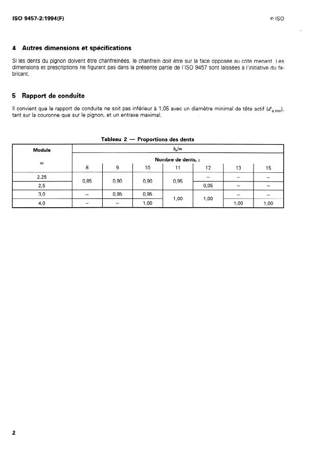 Les dimensions de denture spécifiées dans le tableau 3 sont calculées à partir des valeurs de propor