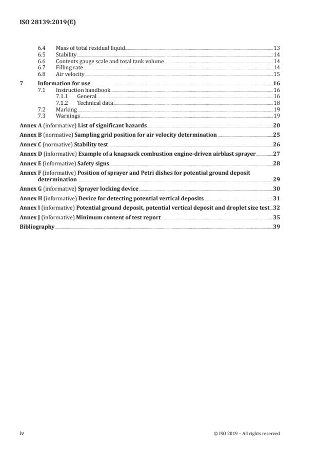 Keywords: ISO 28139:2019, knapsack combustion engine-driven airblast sprayers, safety requirements, environmental requirements, test methods, crop protection, sprayer standards.