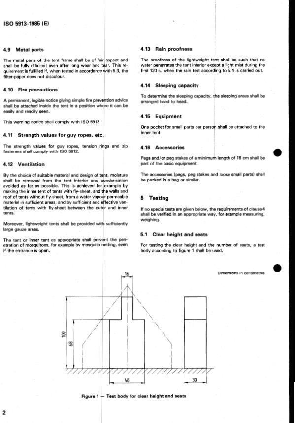 ISO 5913:1985 - Camping tents — Requirements and test methods — Type L (lightweight tents) Released:10/17/1985