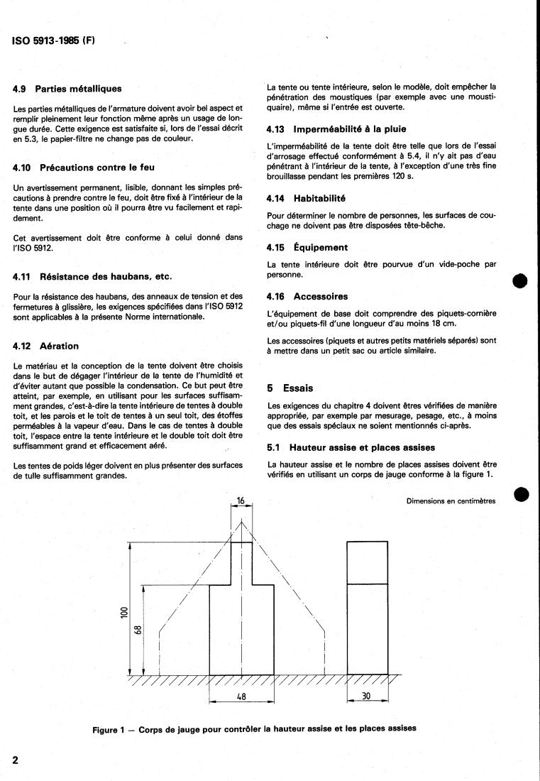 IS0 5912, Tentes de camping - Exigences et méthodes