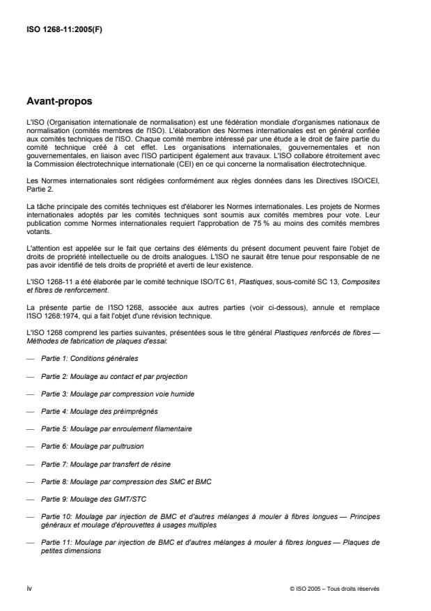 Keywords: ISO 1268-11:2005, fibre‑reinforced plastics, injection moulding, BMC, long‑fibre moulding compounds, small plates, Type D1, Type D2, test specimens, weld lines, moulding conditions.