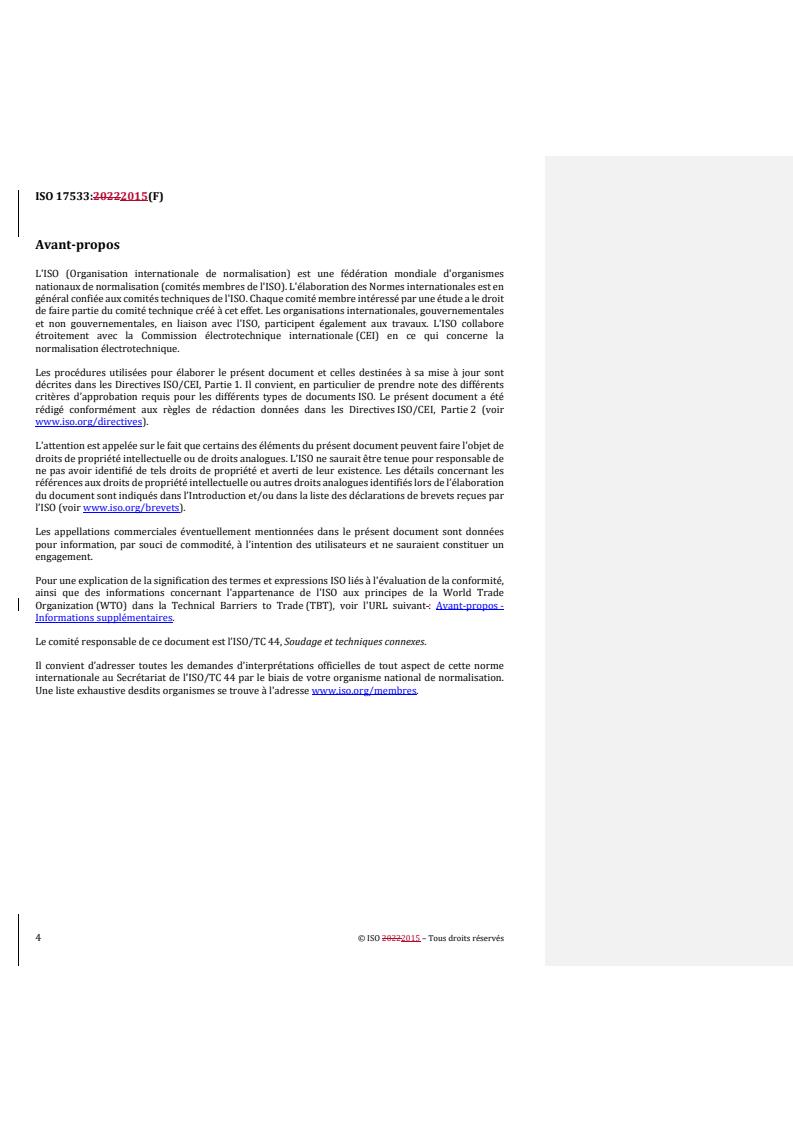 REDLINE ISO 17533:2015 - Soudage pour applications aérospatiales — Informations de soudage dans les documents de conception Released:11. 04. 2023