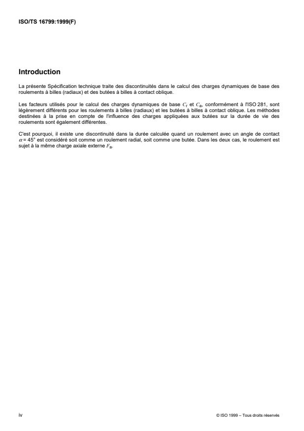 La Spécification technique ISO/TS 16799 a été élaborée par le comité technique ISO/TC 4, Roulements,