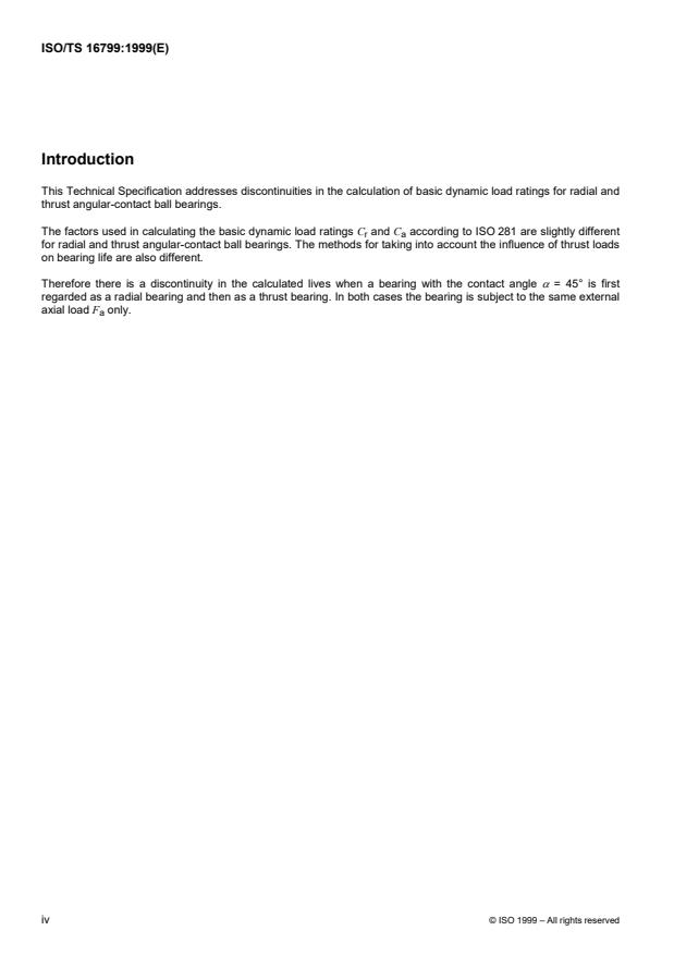 ISO/TS 16799:1999 - Rolling bearings -- Dynamic load ratings and rating life -- Discontinuities in the calculating of basic dynamic load ratings