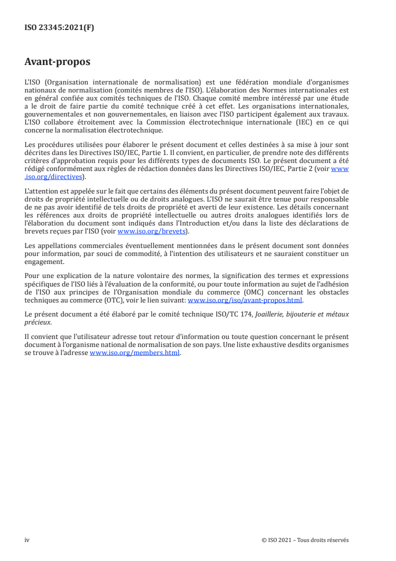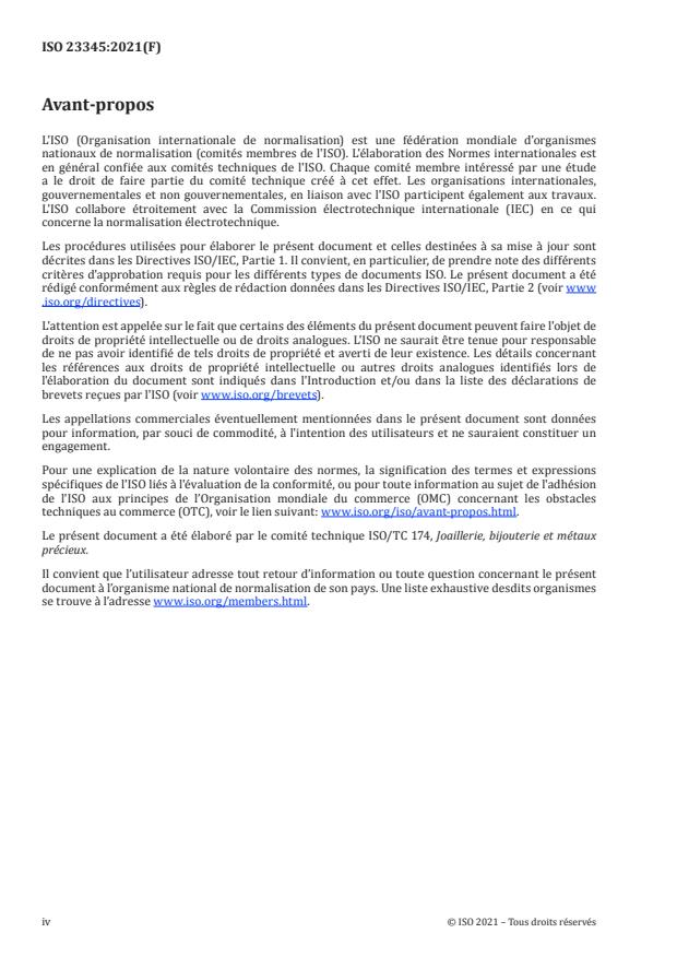 Le présent document a été élaboré par le comité technique ISO/TC 174, Joaillerie, bijouterie et métaux
