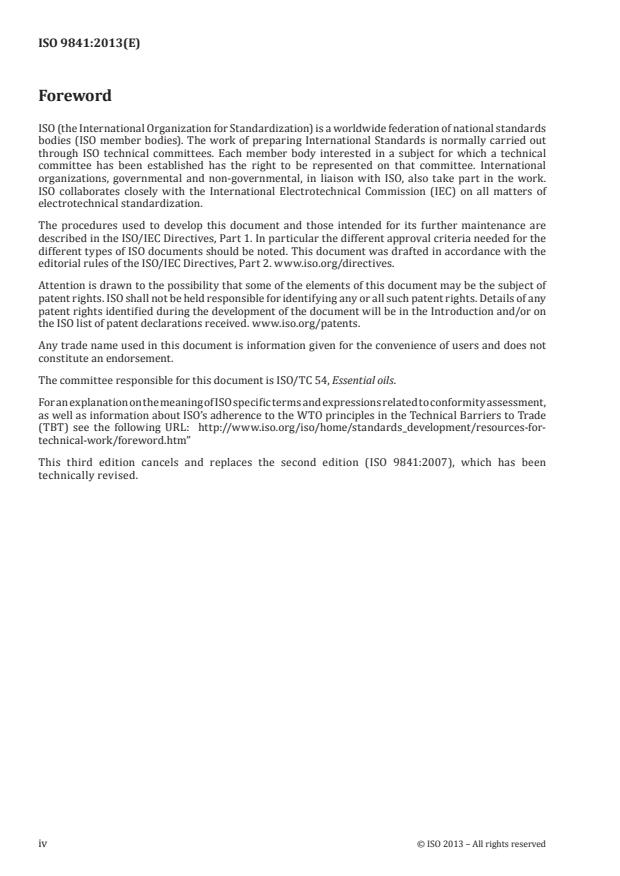 Keywords: ISO 9841:2013, essential oil of hyssop, Hyssopus officinalis, chromatographic profile, gas chromatography, relative density, refractive index, optical rotation, acid value, flashpoint, sampling, quality control.