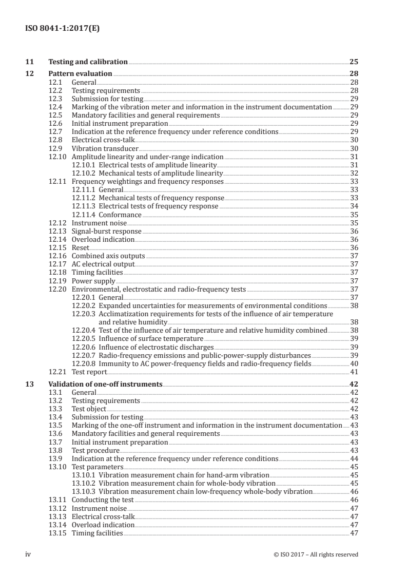 Keywords: ISO 8041-1, vibration meters, measuring instrumentation, human response to vibration, pattern evaluation, periodic verification, in situ checks, vibration calibrators, whole-body vibration, hand-transmitted vibration.