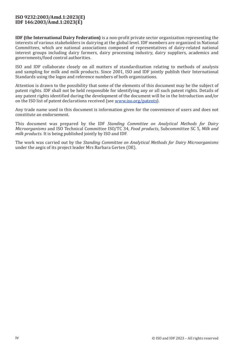 Milk and milk products, and the International Dairy Federation (IDF). It is being published jointly by ISO