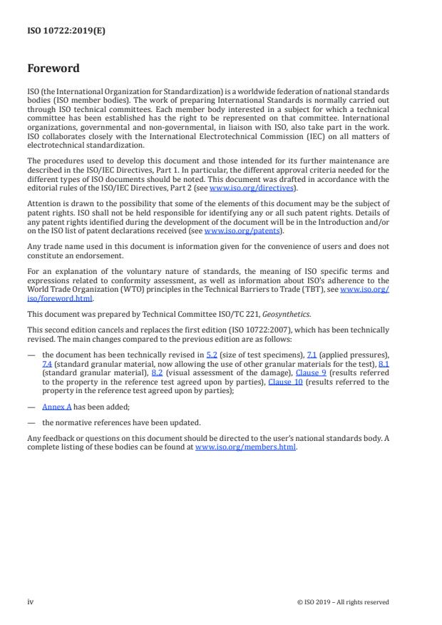 Keywords: ISO 10722:2019, geosynthetics, mechanical damage, index test procedure, repeated loading, granular material, tensile strength, laboratory test method.