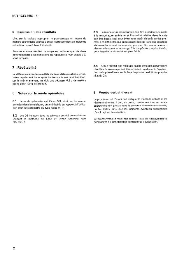 ISO 1743:1982 - Sirops de glucose -- Détermination de la teneur en matiere seche -- Méthode réfractométrique