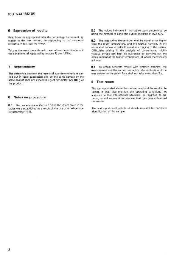 ISO 1743:1982 - Glucose syrup -- Determination of dry matter content -- Refractive index method