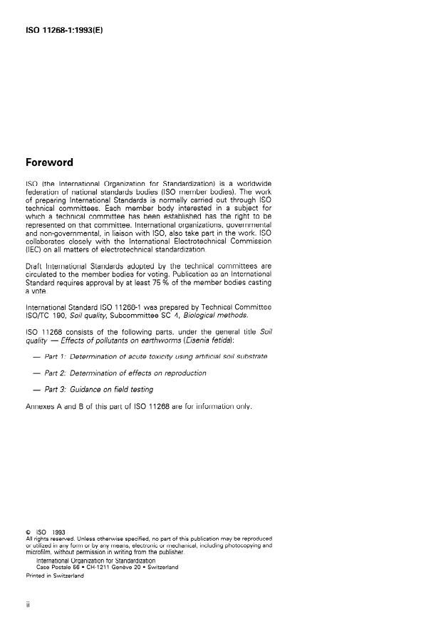 ISO 11268-1:1993 - Soil quality -- Effects of pollutants on earthworms (Eisenia fetida)