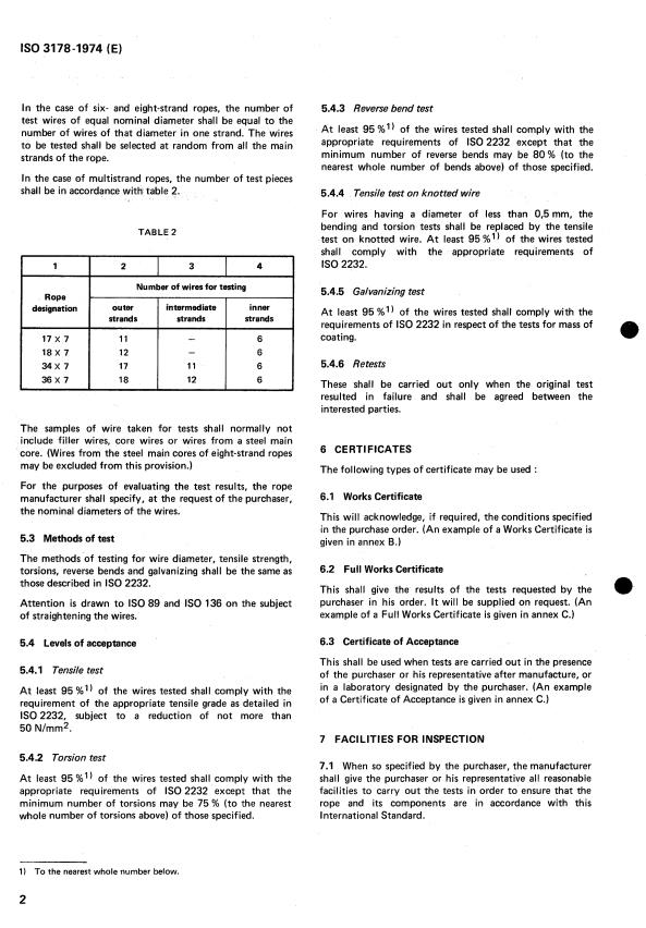 ISO 3178:1974 - Steel wire ropes for general purposes -- Terms of acceptance