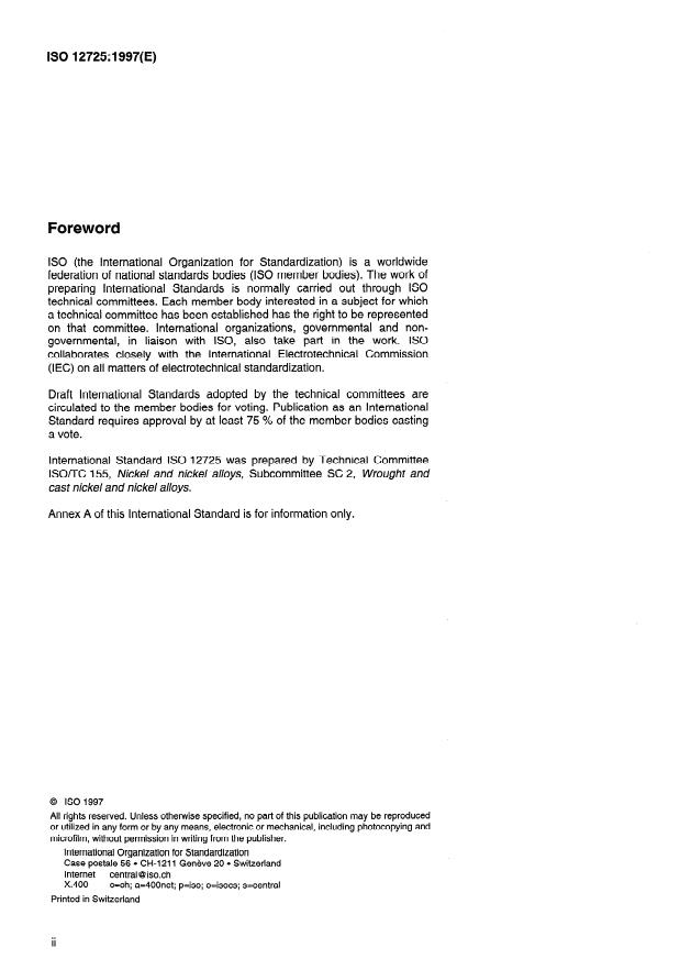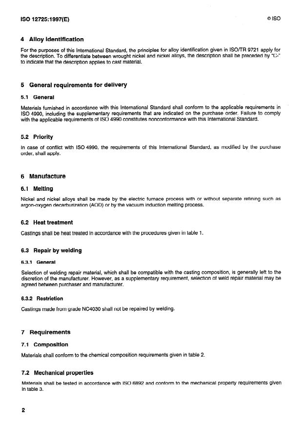ISO 12725:1997 - Nickel and nickel alloy castings Released:7/17/1997