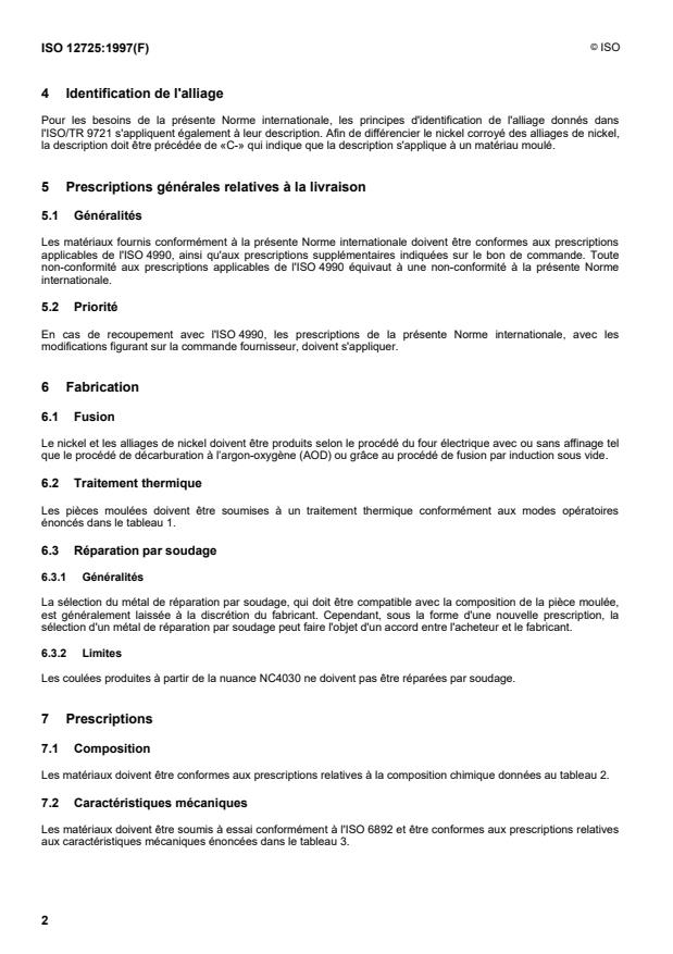 ISO 12725:1997 - Pieces moulées en nickel et alliages de nickel