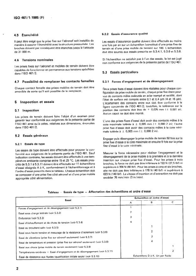 indication contraire, les essais doivent etre effect&s a une tem- d&engagement de la prise mobile a la premiere et a la derniere