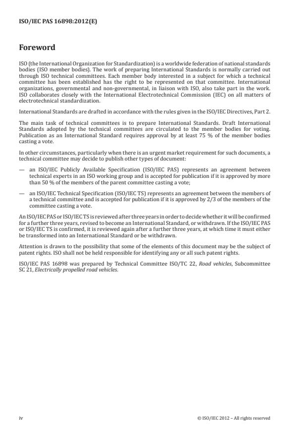 ISO/IEC PAS 16898 was prepared by Technical Committee ISO/TC 22, Road vehicles, Subcommittee