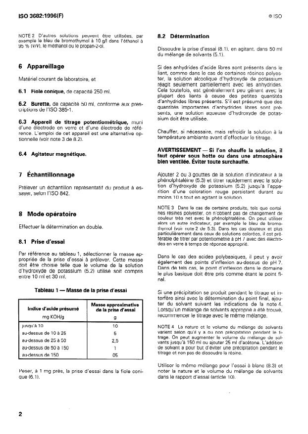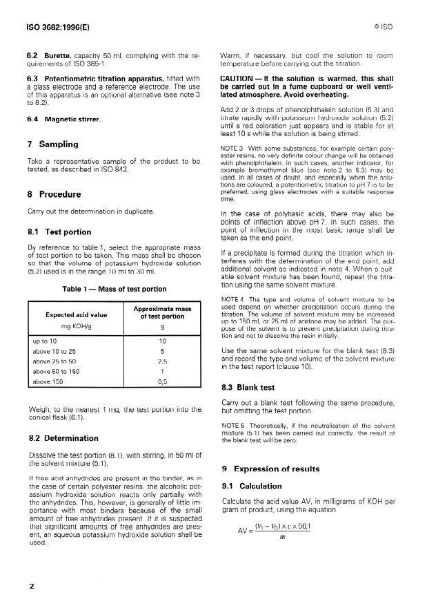 ISO 3682:1996 - Binders for paints and varnishes -- Determination of acid value -- Titrimetric method