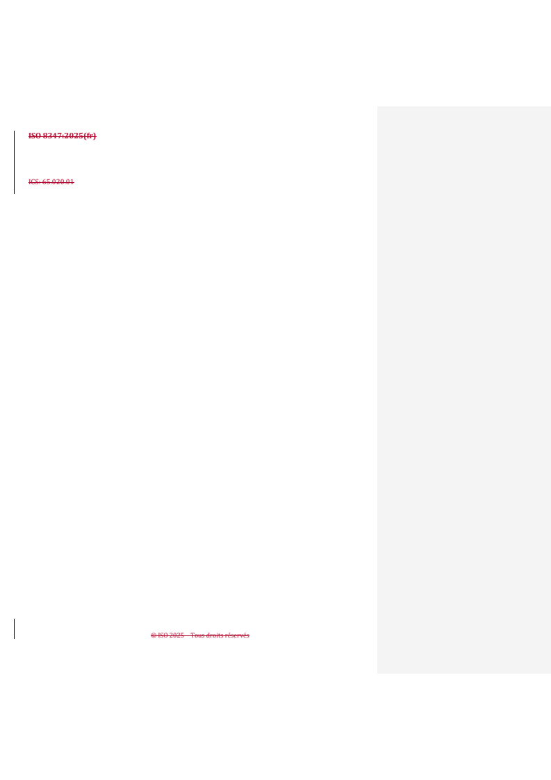 ISO 8347:2025 is classified under the following ICS (International Classification for Standards) categories: 65.020.01 - Farming and forestry in general. The ICS classification helps identify the subject area and facilitates finding related standards.