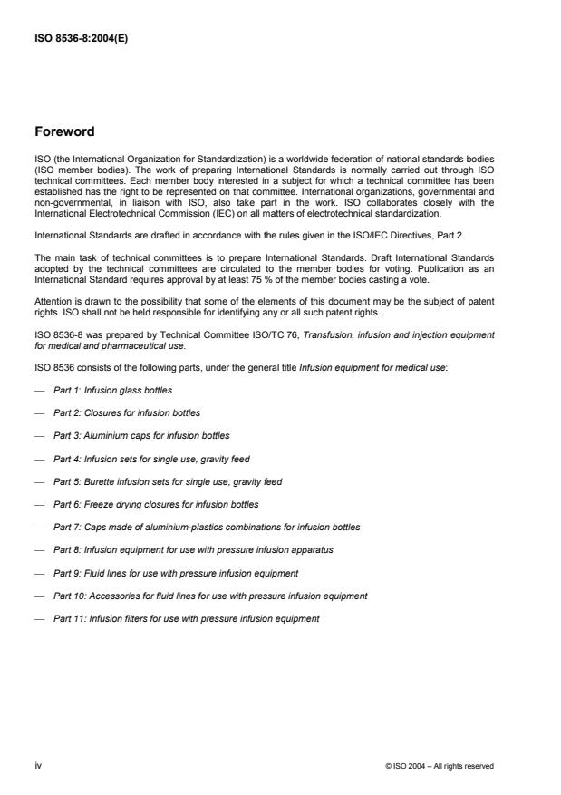 ISO 8536-8 was prepared by Technical Committee ISO/TC 76, Transfusion, infusion and injection equipment