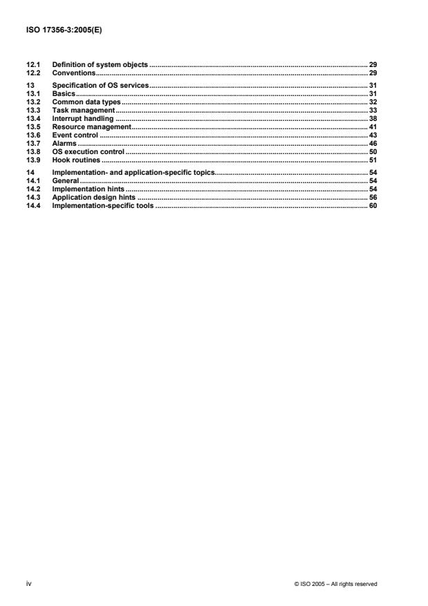 ISO 17356-3:2005은 자동차에 사용할 수 있는 멀티태스킹이 가능한 실시간 운영 체제(OS) 개념을 설명하는 표준입니다. 이는 특정 제품에 대한 설명이 아닌 프레임워크입니다. 또한, 이 표준은 운영 체제의 응용 프로그램 인터페이스(API)에 대한 명세를 포함합니다. ISO 17356-1에서는 이 표준과 관련된 일반적인 규칙, 용어 및 약어에 대해 설명합니다. ISO 17356-6은 구현 및 시스템 생성 측면을 다룹니다. 이 표준에서 지정된 OS는 자동차 제어 장치 응용 소프트웨어의 자원 효율적 이용을 지원하는 일관된 환경을 제공합니다. 이는 단일 프로세서 시스템의 분산 임베디드 제어 장치를 위한 운영 체제입니다.