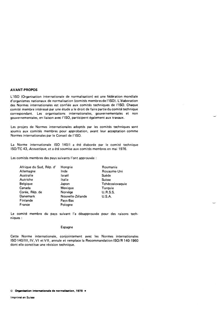 IS0 140/lll, IV,VI et VII, annule et remplace la Recommandation ISO/R 140-1960