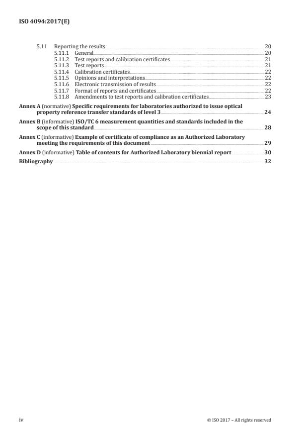 - Annex A (normative): specific technical requirements for issuing optical property reference transfer standards of level 3.
