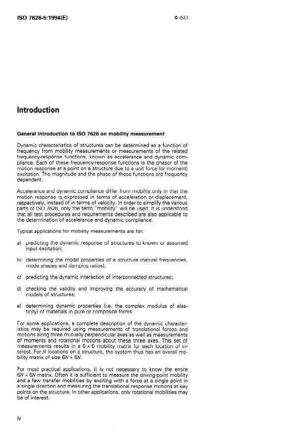 ISO 7626-5:1994 - Vibration and shock -- Experimental determination of mechanical mobility