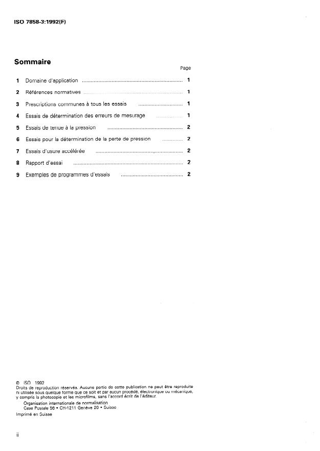 ISO 7858-3:1992 - Mesurage du débit d'eau dans les conduites fermées -- Compteurs d'eau potable froide -- Compteurs combinés