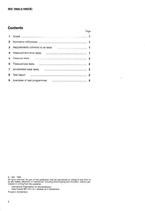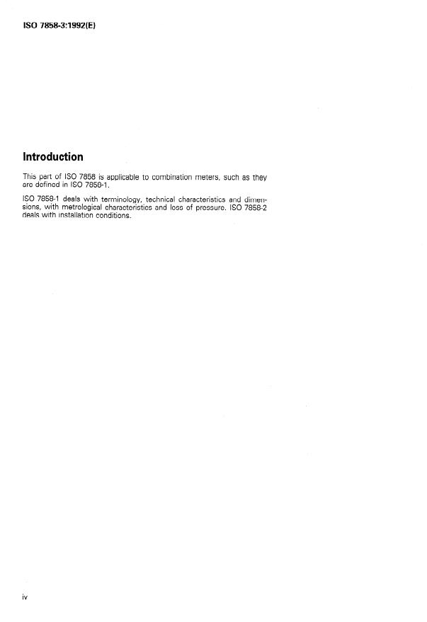 ISO 7858-3:1992 - Measurement of water flow in closed conduits -- Meters for cold potable water -- Combination meters