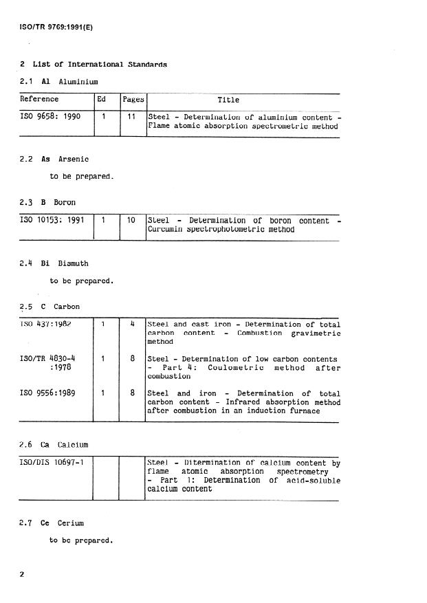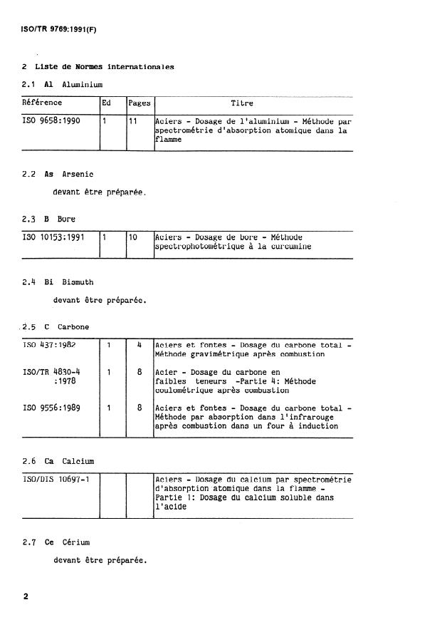 Refers to the available international standard method(s) for the determination of required element(s) in steel and iron. States the field of application, the method of determination (principle), and the precision of each standard. This third edition cancels and replaces the second edition (1990).