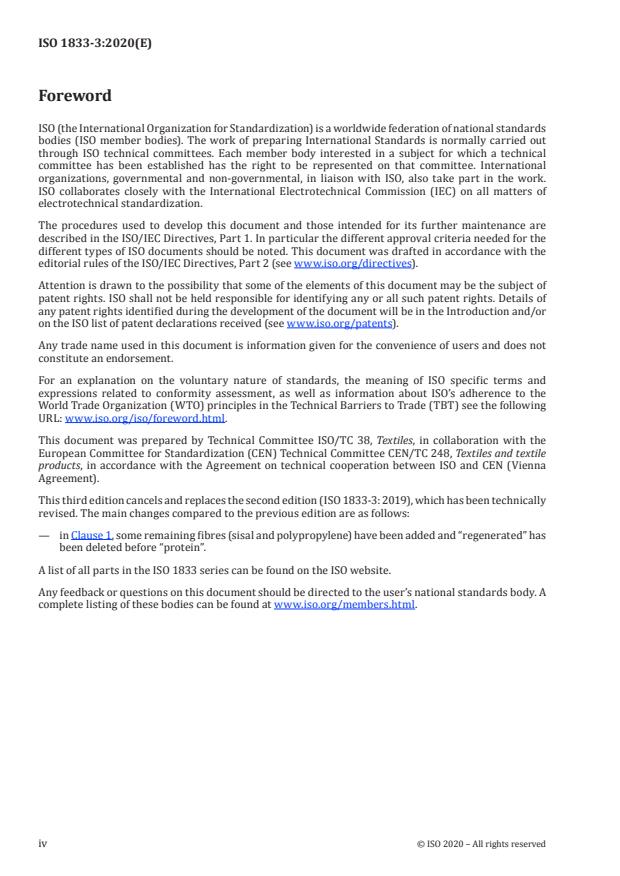 ISO 1833-3:2020 is classified under the following ICS (International Classification for Standards) categories: 59.060.01 - Textile fibres in general. The ICS classification helps identify the subject area and facilitates finding related standards.