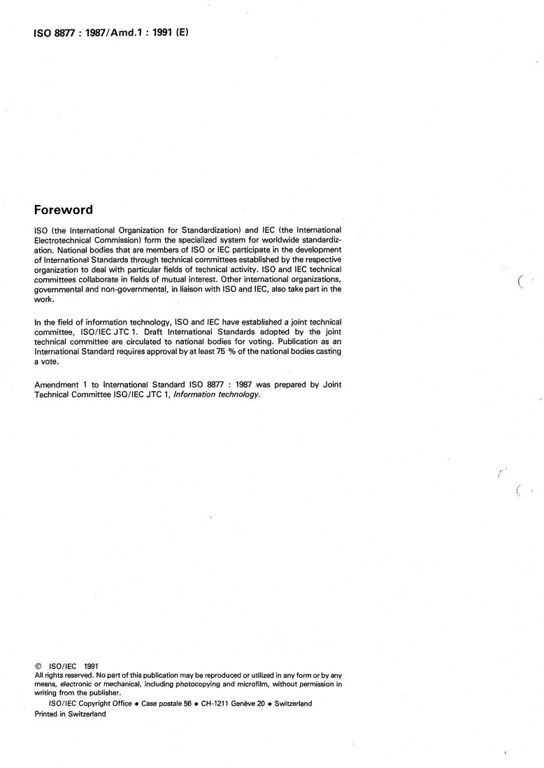 IS0 8877 : 1987/Amd.l : 1991 (E)