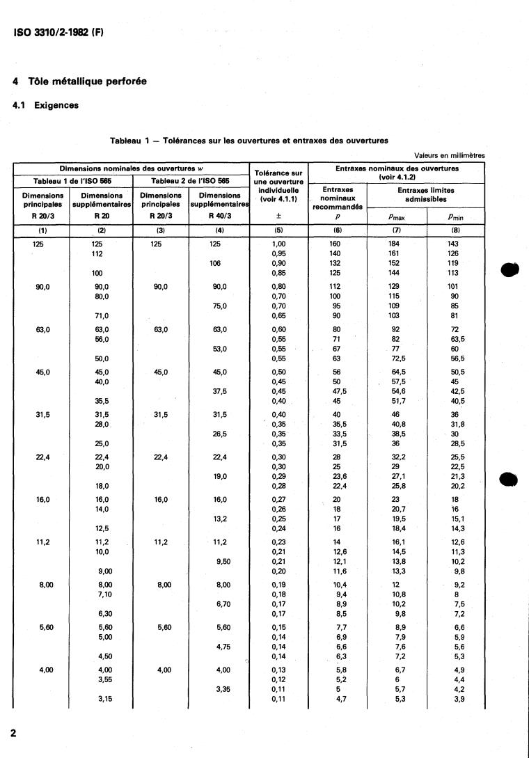 Tableau 2 de I'ISO 565