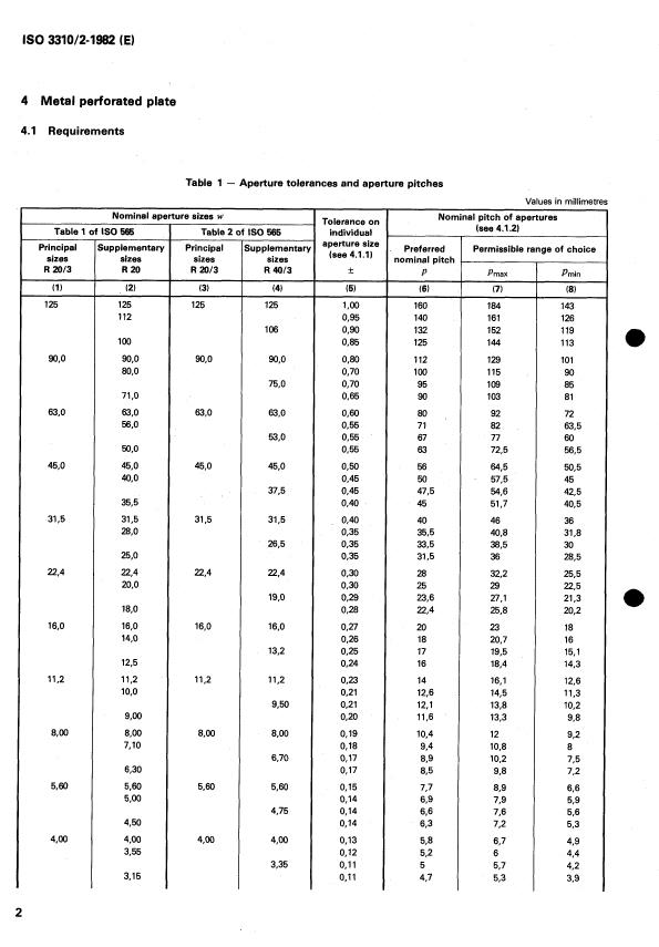 ances for the dimensions of apertures in perforated as close as series containing more rounded values of preferred numbers.