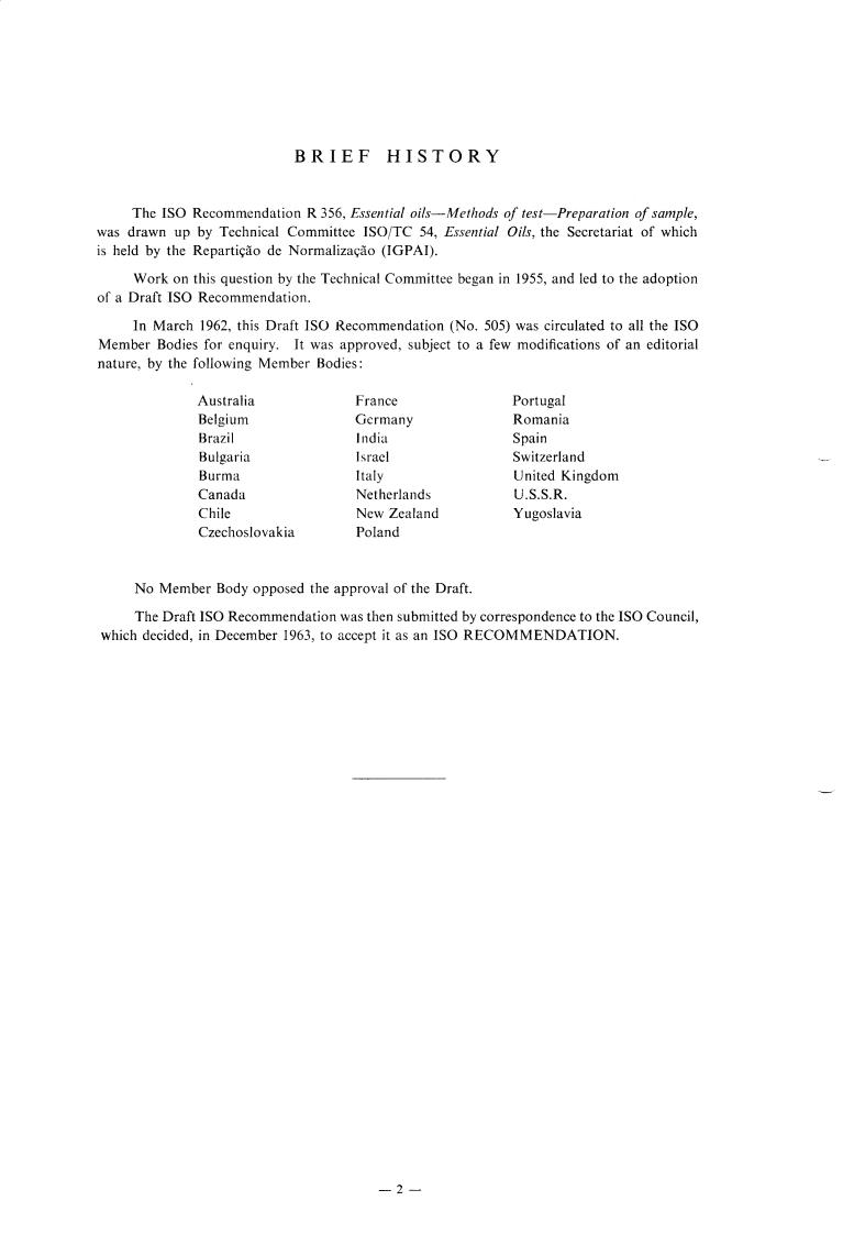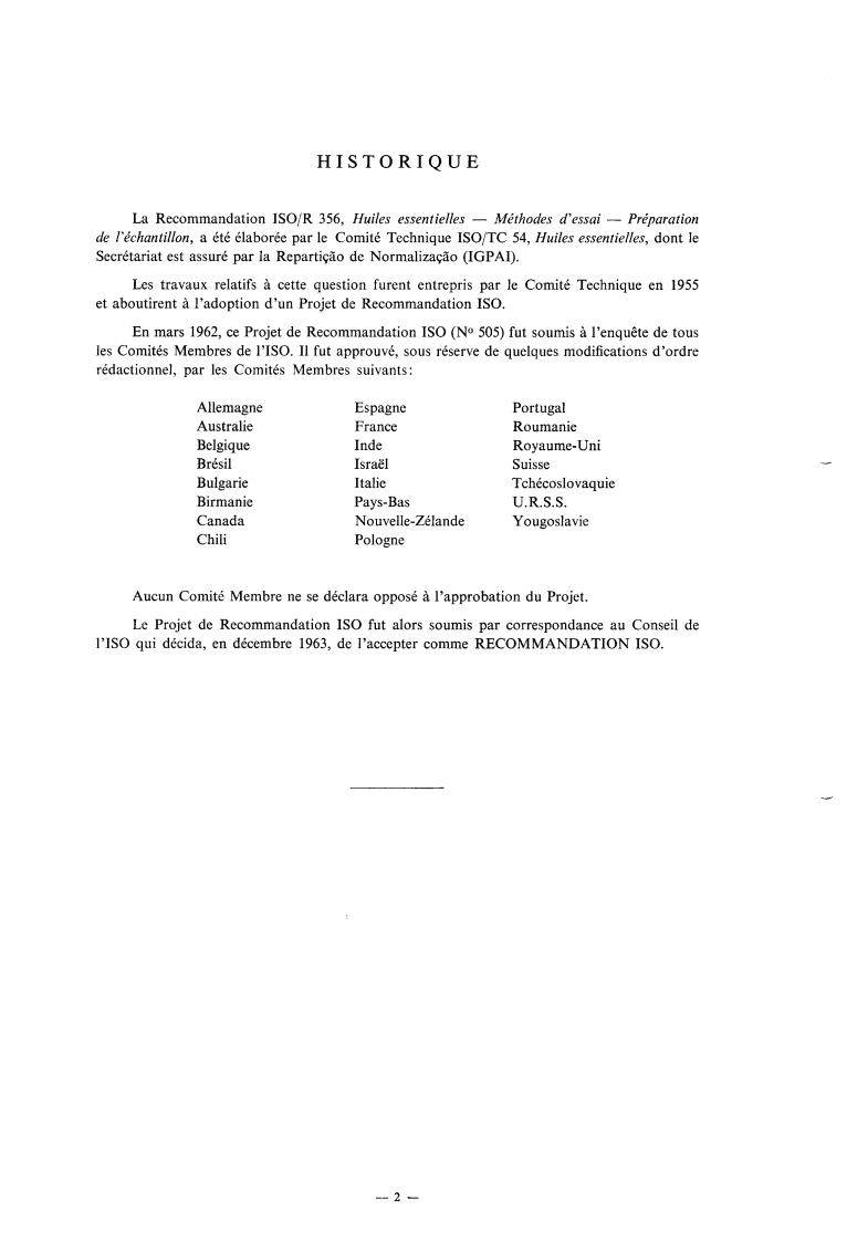 The IS0 Recommendation R 356, Essential oils-Methods of test-Preparation of sample,