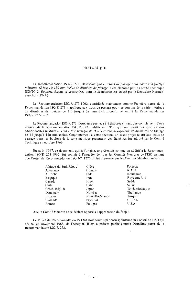 revision de la Recommandation ISO/R 272, publiée en 1968. qui comprenait des spécifications