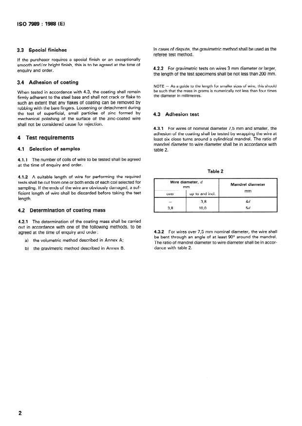 ISO 7989:1988 is a standard published by the International Organization for Standardization (ISO). Its full title is "Zinc coatings for steel wire". This standard covers: Specifies requirements for the mass, quality and testing of zinc coatings on steel wire of circular cross-section. Gives definitions, coating requirements, test requirements. Annexes A and B contain a volumetric method and a gravimetric method, respectively, for determination of mass of zinc deposited per unit surface area.