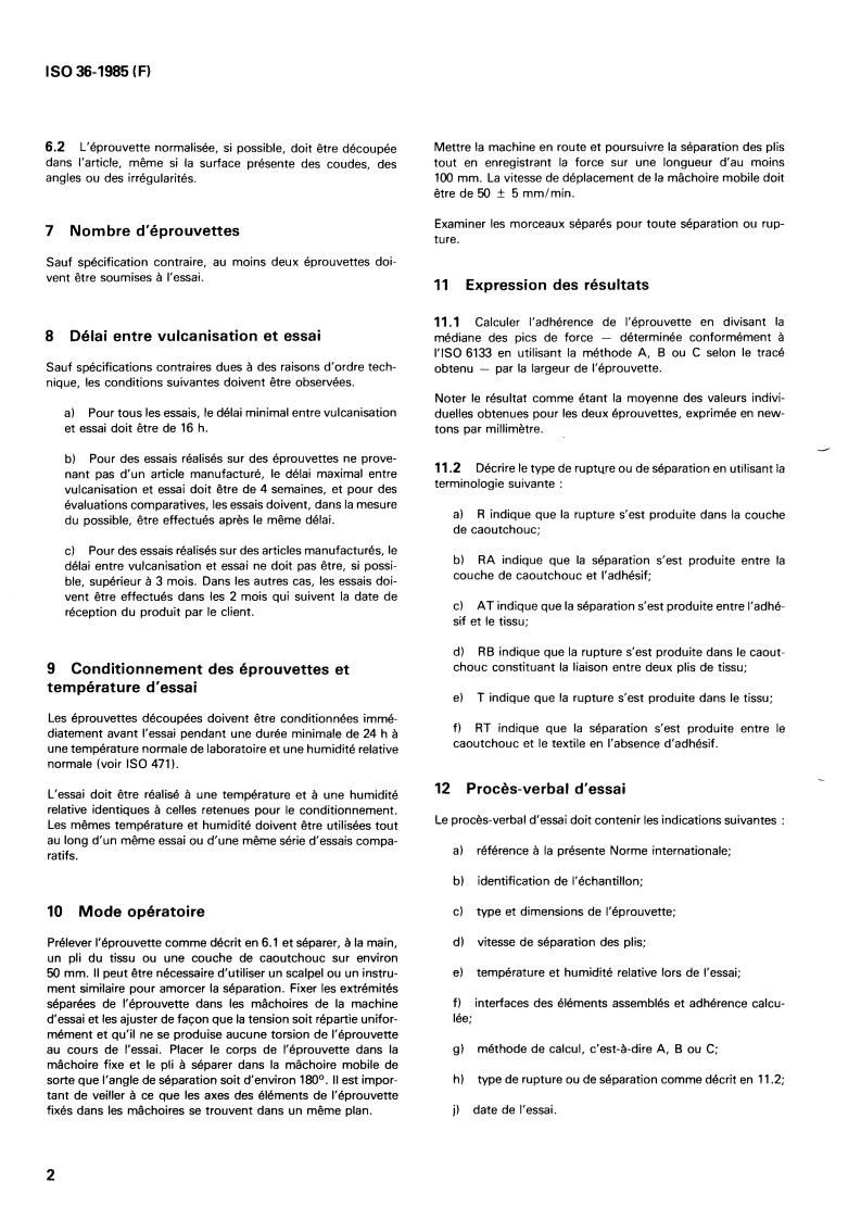 ISO 36:1985 is a standard published by the International Organization for Standardization (ISO). Its full title is "Rubber, vulcanized — Determination of adhesion to textile fabric". This standard covers: Rubber, vulcanized — Determination of adhesion to textile fabric