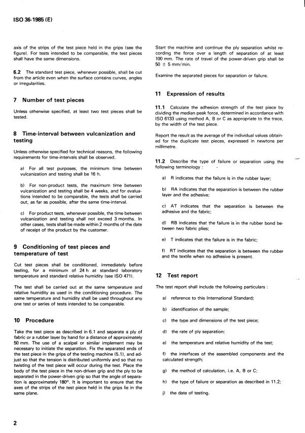 ISO 36:1985 - Rubber, vulcanized — Determination of adhesion to textile fabric Released:12/12/1985