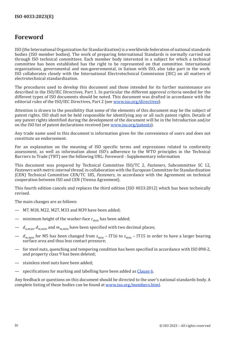 This fourth edition updates and extends the previous edition by adding several sizes (including M7, M18, M22, M27, M33 and M39), clarifying dimensional tolerances, and adding stainless steel nuts and marking/labelling requirements.
