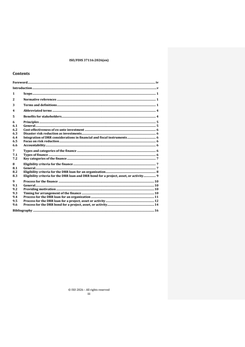 REDLINE ISO/FDIS 37116 - Sustainable cities and communities — Disaster risk finance — Principles and general requirements for financing ex-ante investment in risk reduction Released:22. 01. 2026