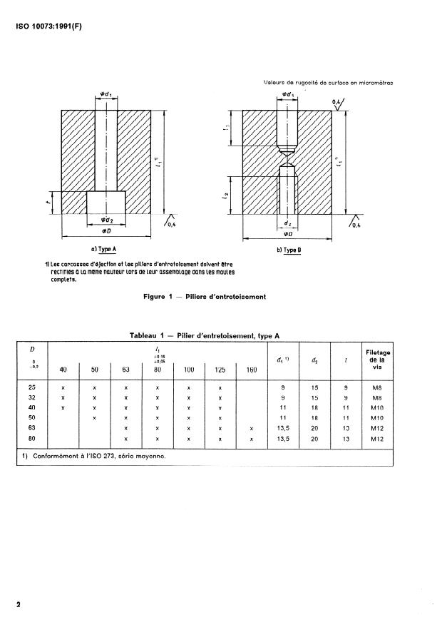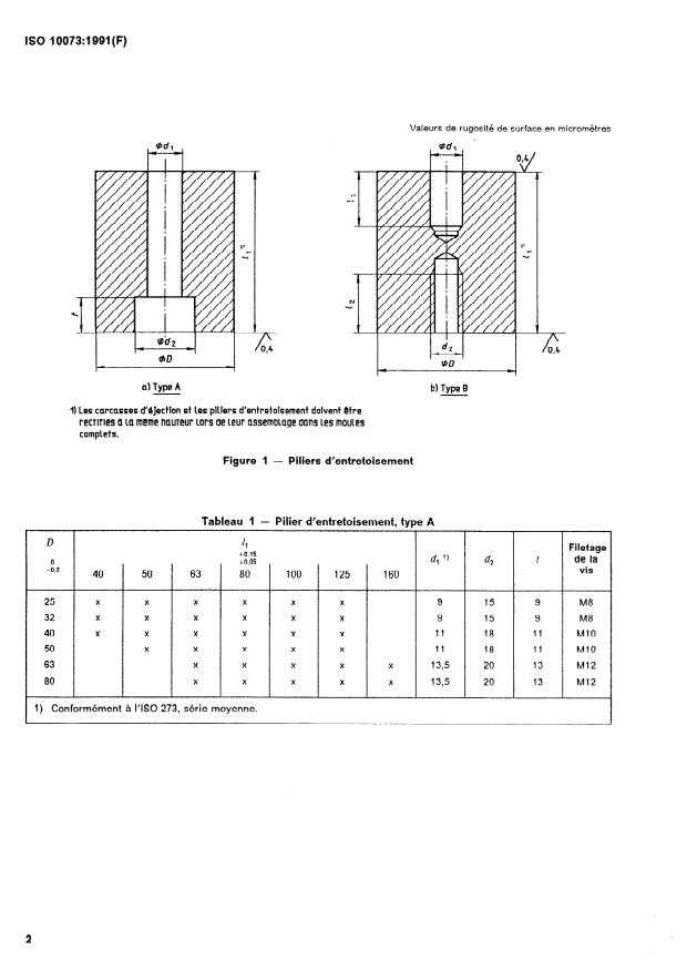 ISO 10073:1991 - Outillage de moulage -- Piliers d'entretoisement