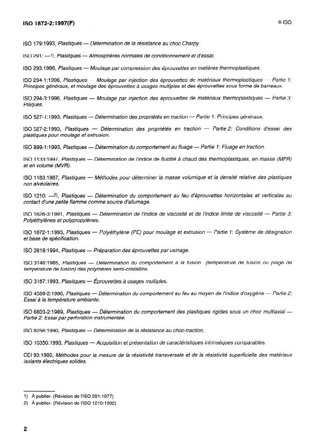 ISO 1872-2:1997 - Plastiques -- Polyéthylene (PE) pour moulage et extrusion