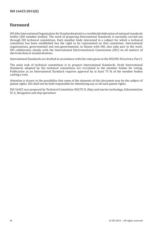ISO 16425:2013 specifies installation guidelines for ship communication networks for improving communication for shipboard equipment and systems that are independent from navigational equipment networks and engine-control networks. ISO 16425:2013 utilizes existing standards relating to protocols, and provides new guidelines for such aspects as communication network-system architecture, administration, operation, and installation. The new guidelines specifically include: redundancy if necessary for a shipboard communication network system; network administration that does not require experts; physical as well as logical security; and network installation.