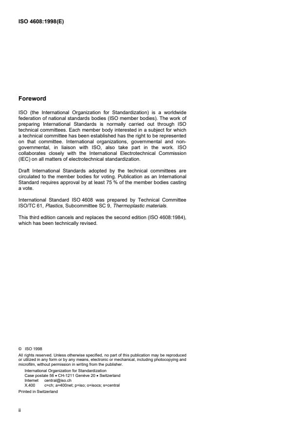 ISO 4608:1998 is classified under the following ICS (International Classification for Standards) categories: 83.080.20 - Thermoplastic materials. The ICS classification helps identify the subject area and facilitates finding related standards.